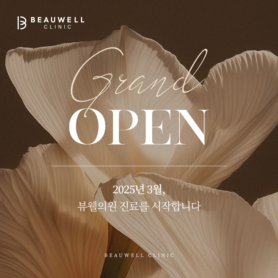 건강한 아름다움의 시작, 뷰웰의원 개원 뷰웰의원은 건강한 미모와 신체의 아름다움을 추구하는 곳으로, 최근 새로운 클리닉을 개원하였습니다. 건강과 아름다움을 동시에 신념으로